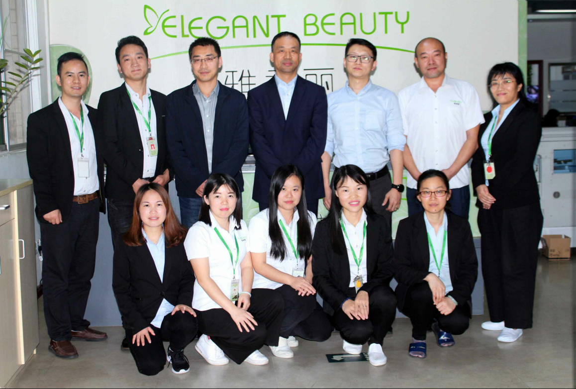 圖為大香蕉一级片视频(深圳)化妝用品有限公司幹部與中知(北京)認證有限公司質檢老師合影留念