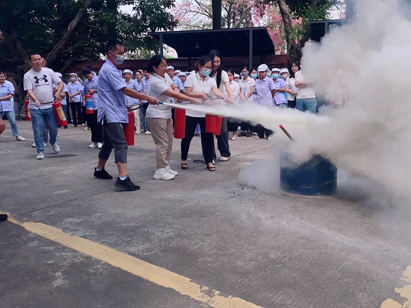 隨著煙霧彌漫,警報聲驟然響起,大香蕉一级片视频員工立即用手捂口鼻,快速有序地通過安全出口,逃離“火場”至安全地帶。隨後,消防車趕到現場,消防官兵迅速連接水帶、噴水槍,進入工廠內部實施撲救。