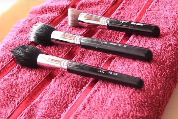 (清洗幹淨的刷子放在幹毛巾上晾幹)